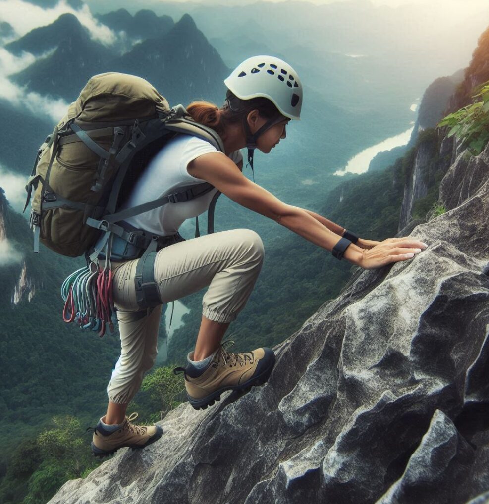 手袋が緩いものだと、手に力を入れた際にズレたりして手元を不安定にします。ぴったりとフィットしたもの、手首で脱げたりズレたりしないよう固定できるもであればよいですが、そうでない場合は素手で登った方が安全です。