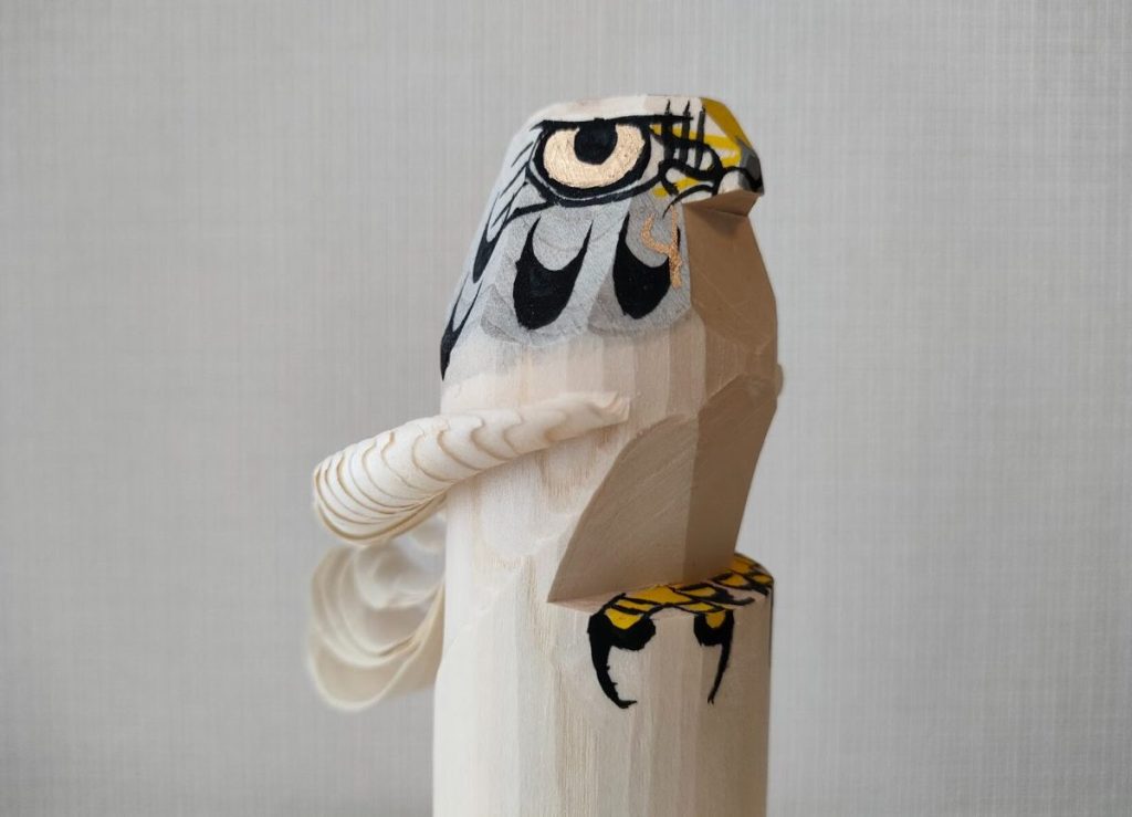 木が反り返って羽を表現しているのがクールで美しいです。旅の冊子で見かけて一目惚れし、お鷹ポッポに出会うために山形に行きました。次回はぜひ米沢の工房へ行ってみたいと思います。