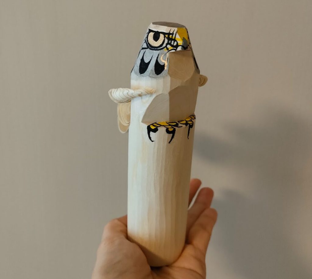 The Otaka Poppo is a traditional Japanese wooden toy, particularly well-known as a folk toy from the Tohoku region. This toy takes the form of a small wooden figure of a hawk, created for children to play with. The name “Poppo” comes from the sound children make when moving this toy.