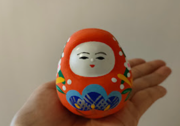 Additionally, “okiagari” means to rise up again after falling or facing hardships, so it has become a custom in this region to gift these dolls when a child is born. These dolls are adorable as they also rise up and smile again even if they tumble over.